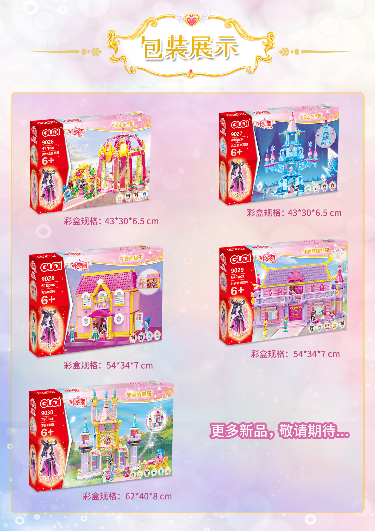 古迪積木葉羅麗系列,第一彈共推出了5個系列,分別是人氣角色辛靈的葉羅麗娃娃店,羅麗與她的城堡,孔雀的房子,還有冰冷高貴的冰公主與她的宮殿,和靈公主的花圣殿,為進一步滿足消費者需求、拉近消費者與品牌距離,古迪積木將原作中的羅麗、辛靈、冰公主、孔雀等人物形象融入產(chǎn)品設計,附能仙宮魔堡,讓積木場景更具有內(nèi)涵與故事情節(jié),引領、個性化、多元化的積木品牌新風潮。