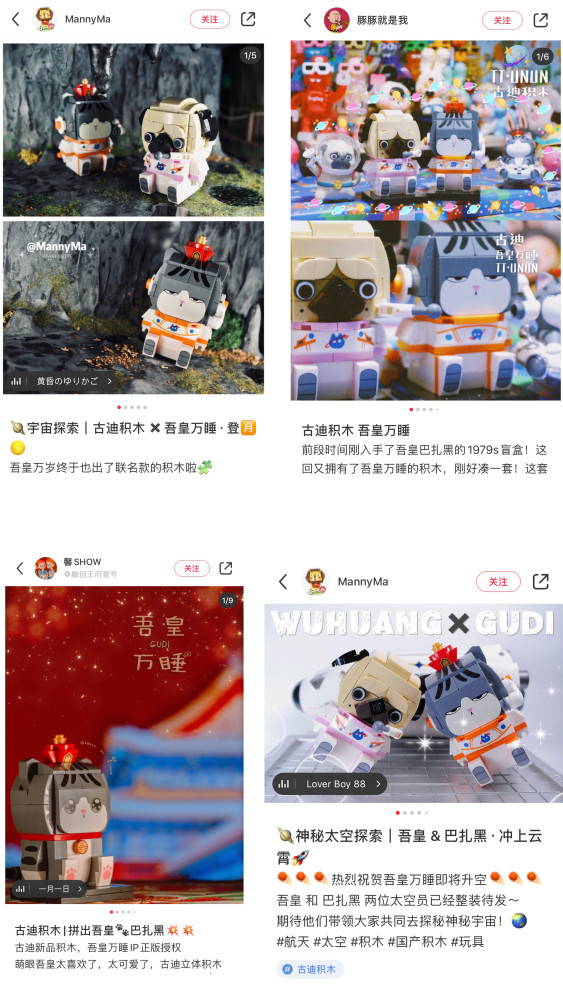 未來,吾皇萬睡與古迪積木還將陸續(xù)推出多款聯(lián)名積木,通過IP形象為品牌賦能,助力品牌開辟全新市場布局,打造更多元化的年輕精品積木玩法方式和消費方式。