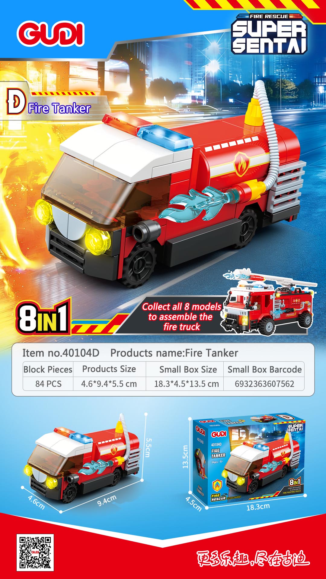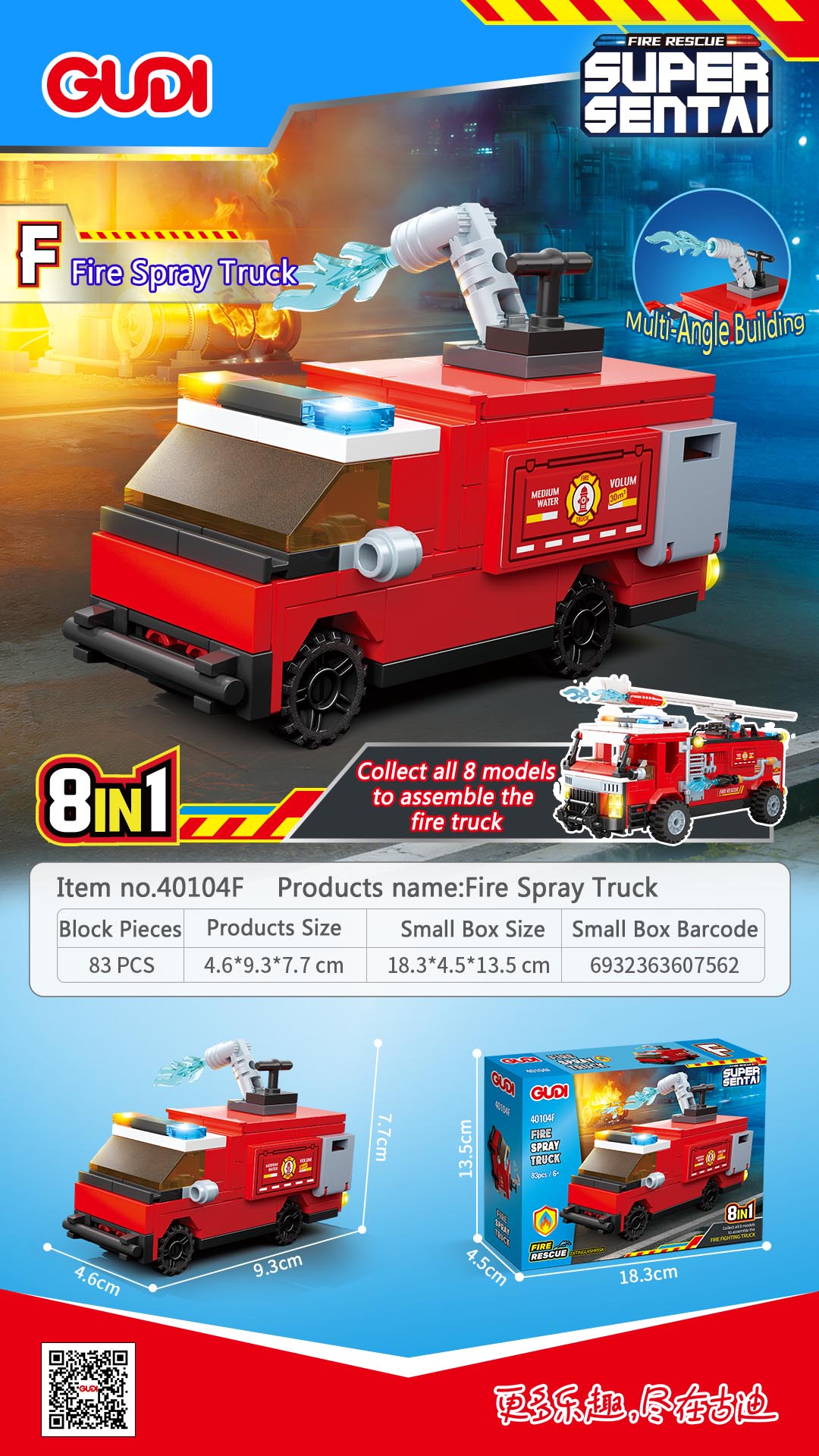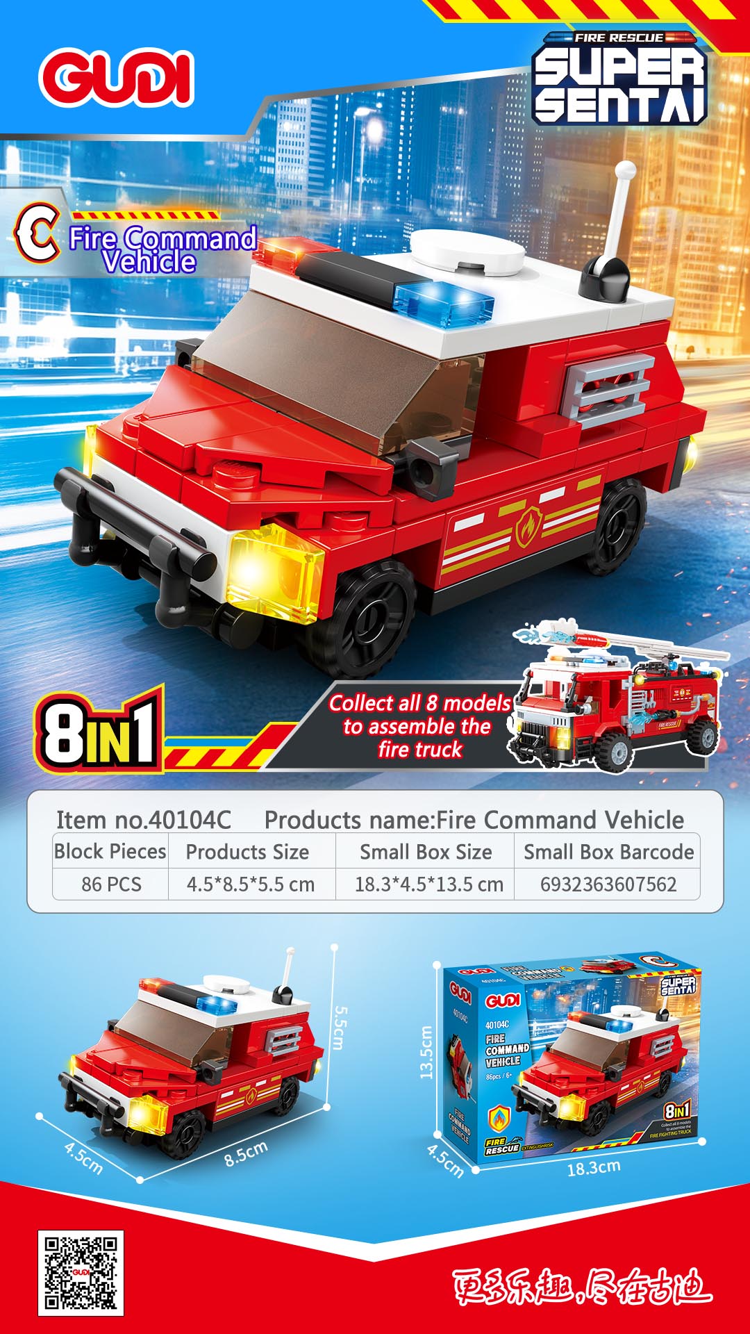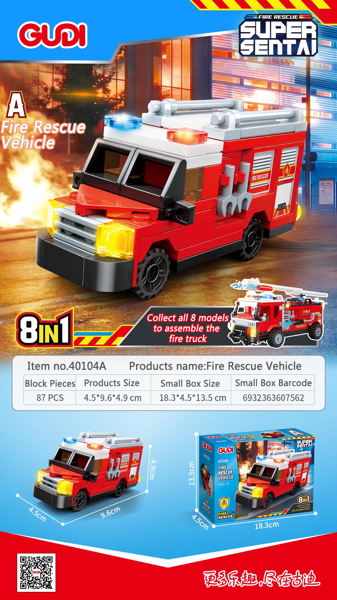 - Description:40104A-Fire Rescue Vehicle -87PCS; 40104B-Fire Ladder Truck -81PCS; 40104C-Fire Communication Vecle -86PCS; 40104D-Fire Tanker Truck-84PCS; 40104E-Fire Jeep-94PCS; 40104F-Fire Spray Truck-83PCS; 40104G-Fire Helicopter-76PCS; 40104H-Fire Speedboat-77PCS