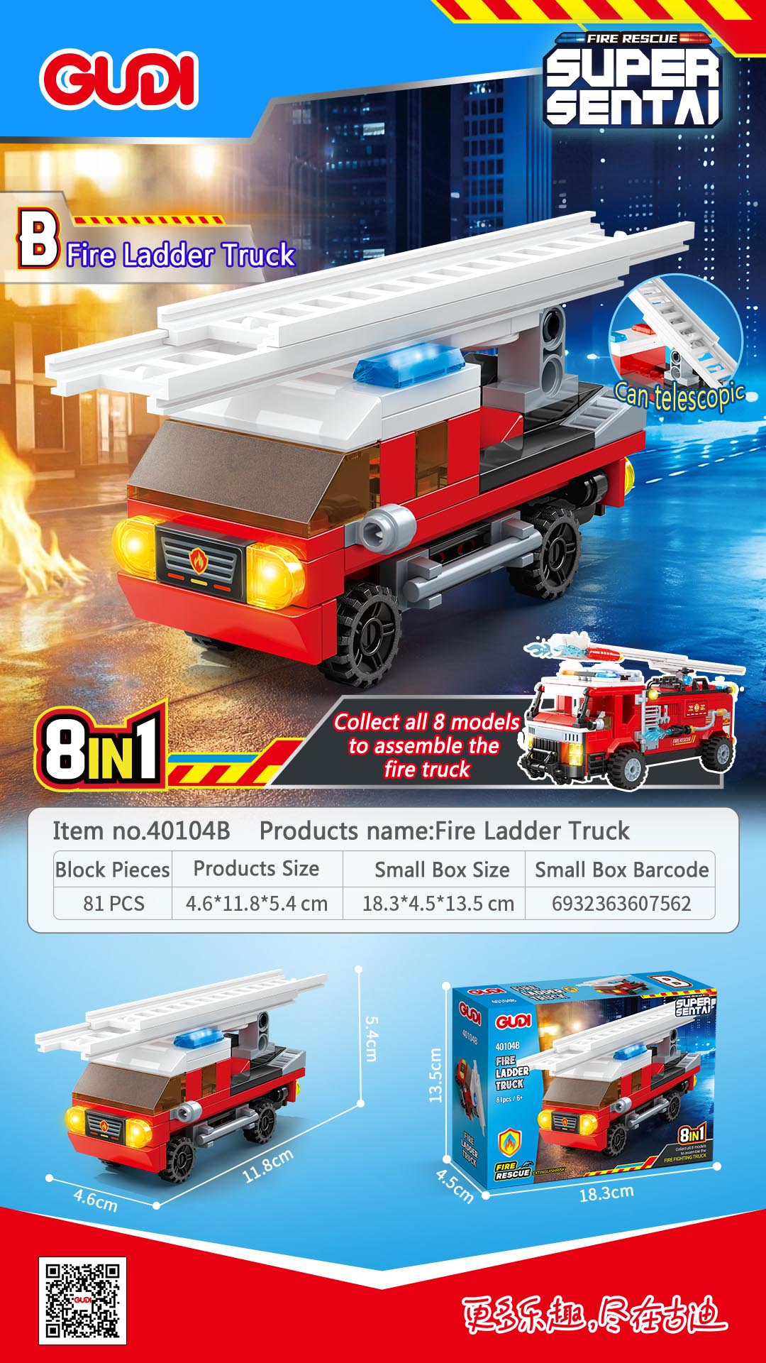 Product Name:Gudi New arrived 8 IN 1 high-reach fire truck